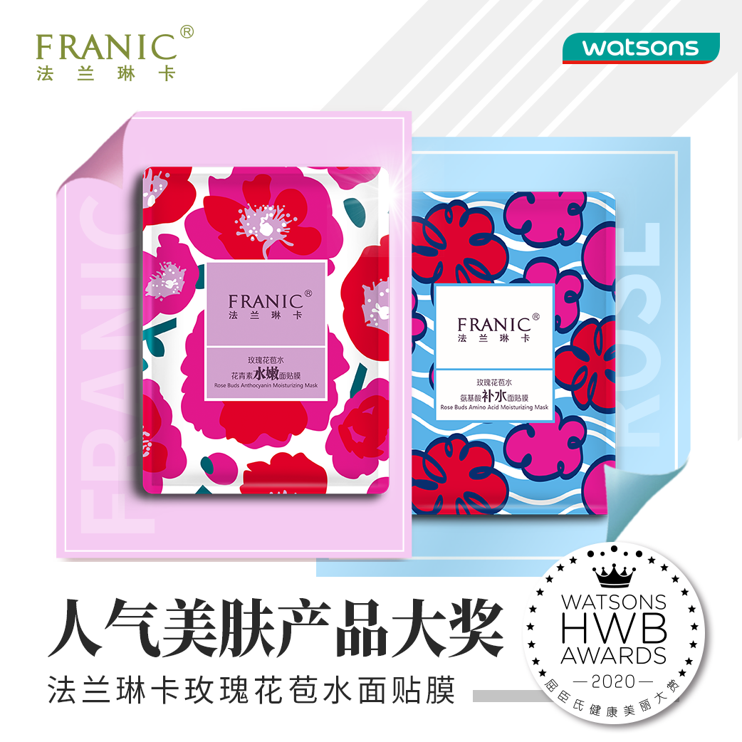 多渠道發(fā)力的法蘭琳卡,在產(chǎn)品打造和營銷方式上,采取度渠定制的方式,為不同渠道量身定制。以屈臣氏渠道為例,法蘭琳卡以更精準、高效的方式觸達目標(biāo)消費群,滿足他們對新鮮感、趣味性購物體驗和產(chǎn)品體驗的追求。而此次榮獲“人氣美膚產(chǎn)品大獎”的玫瑰花苞水面膜,自2018年上市至今,已經(jīng)連續(xù)3年成為屈臣氏的人氣爆品。